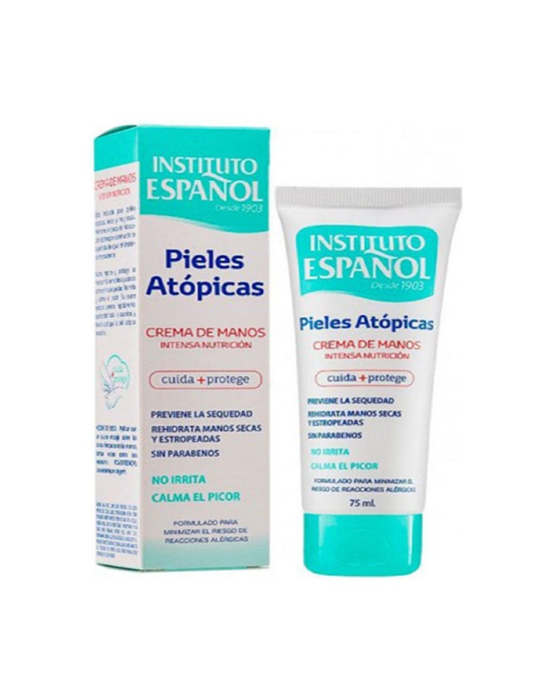 La Crema de Manos Intensa Nutrición Pieles Atópicas de Instituto Español está formulada para responder a las necesidades de bienestar de la piel atópica del bebé, del niño y del adulto. Cuida y protege la piel, previene la sequedad y rehidrata las manos secas y estropeadas del uso diario gracias a sus ingredientes activos con propiedades anti-pruriginosas, anti-inflamatorias y anti-radicales, aliviando la irritación y el picor al mismo tiempo que protege y suaviza la piel. Puede utilizarse conjuntamente con tratamientos con corticoides e inmunorreguladores.