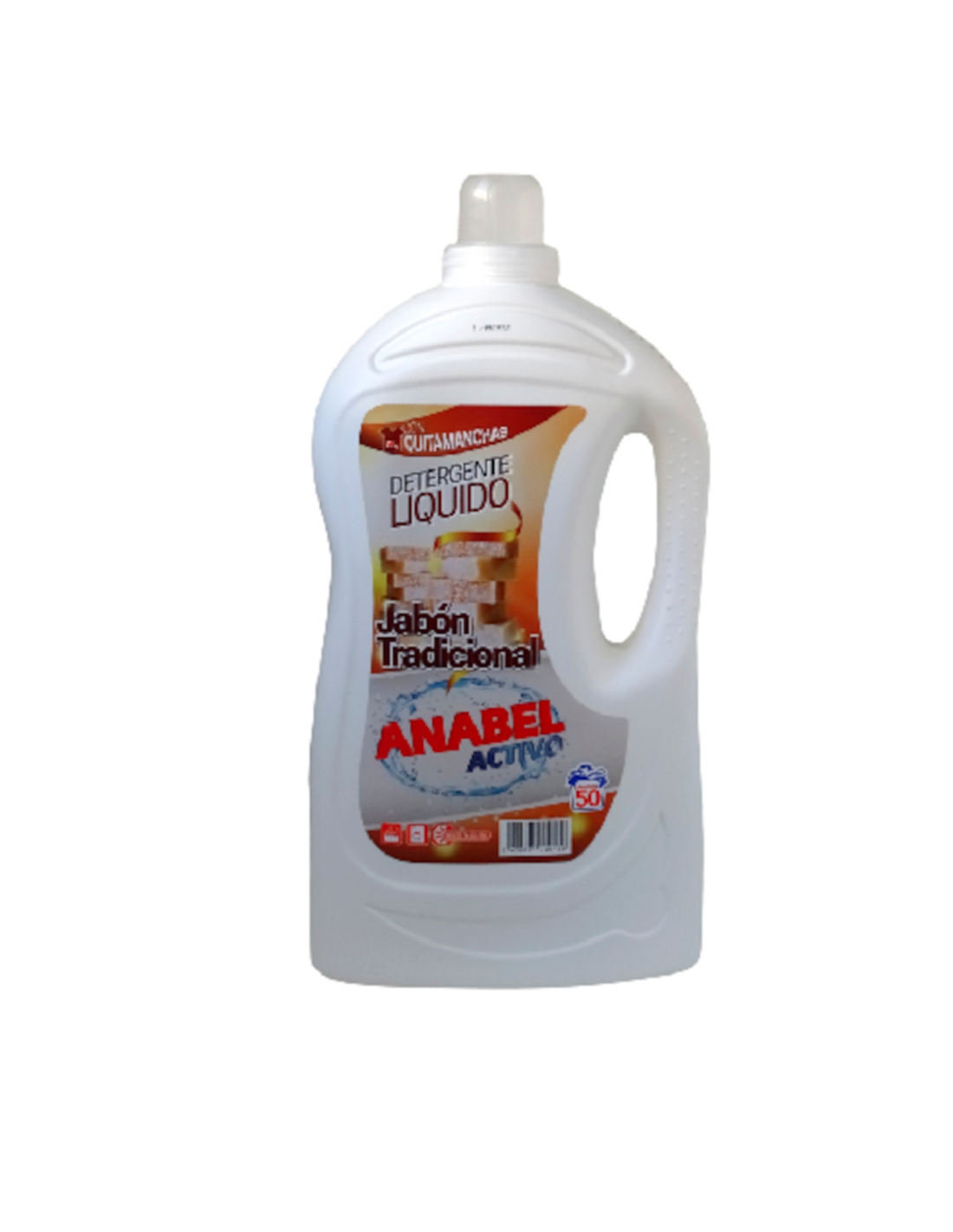 Detergente liquido 50 lavados Anabel Jabón Tradicional, es un detergente de gran poder quitamanchas para todo tipo de ropa, mantiene la tradicional limpieza y un inconfundible perfume a Jabón de Marsella, puede utilizarse tanto a mano como a máquina, pensado para todo tipo de aguas y temperaturas.