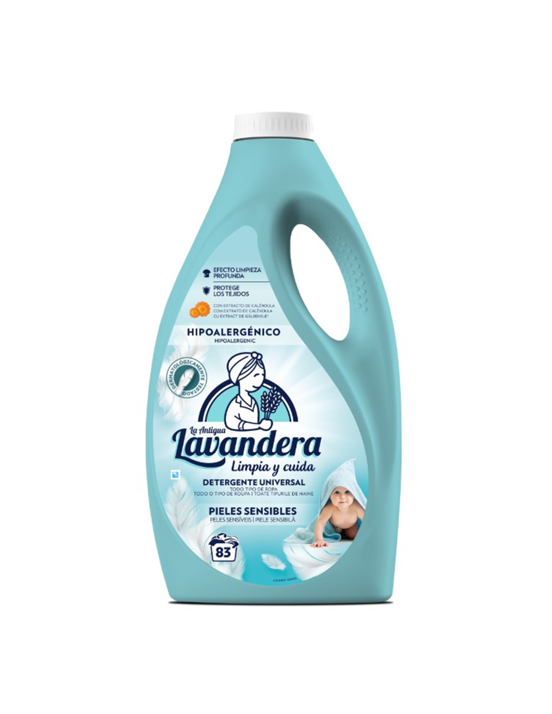 Gel Detergente Universal – La Lavandera (90 dosis) Disfruta de una limpieza impecable y duradera con el Gel Detergente Universal de La Lavandera, diseñado para ofrecer el máximo rendimiento en cada lavado. Su fórmula concentrada y versátil garantiza una acción profunda que elimina la suciedad más difícil, respetando la suavidad de los tejidos y conservando los colores de tus prendas como el primer día. Ideal para todo tipo de ropa —blanca o de color, delicada o de uso diario—, este gel detergente actúa con eficacia incluso en ciclos cortos y a bajas temperaturas, ayudándote a ahorrar energía sin renunciar a una colada perfecta. Su textura en gel permite una dosificación precisa y cómoda, optimizando el producto para ofrecer hasta 90 dosis de limpieza profesional en cada envase. Además de cuidar tu ropa, el Gel Detergente Universal de La Lavandera deja un agradable aroma fresco y duradero, que convierte el momento del lavado en una experiencia de cuidado y bienestar para toda la familia. Características principales: Detergente en gel concentrado para uso universal Rinde hasta 90 lavados (dosis) Limpieza eficaz desde bajas temperaturas Apto para ropa blanca y de color Protege las fibras y realza los colores Aroma fresco y duradero Ideal para uso doméstico familiar Con La Lavandera, cada lavado es un gesto de cuidado hacia tu ropa y tu hogar. Calidad, tradición y confianza en cada gota.