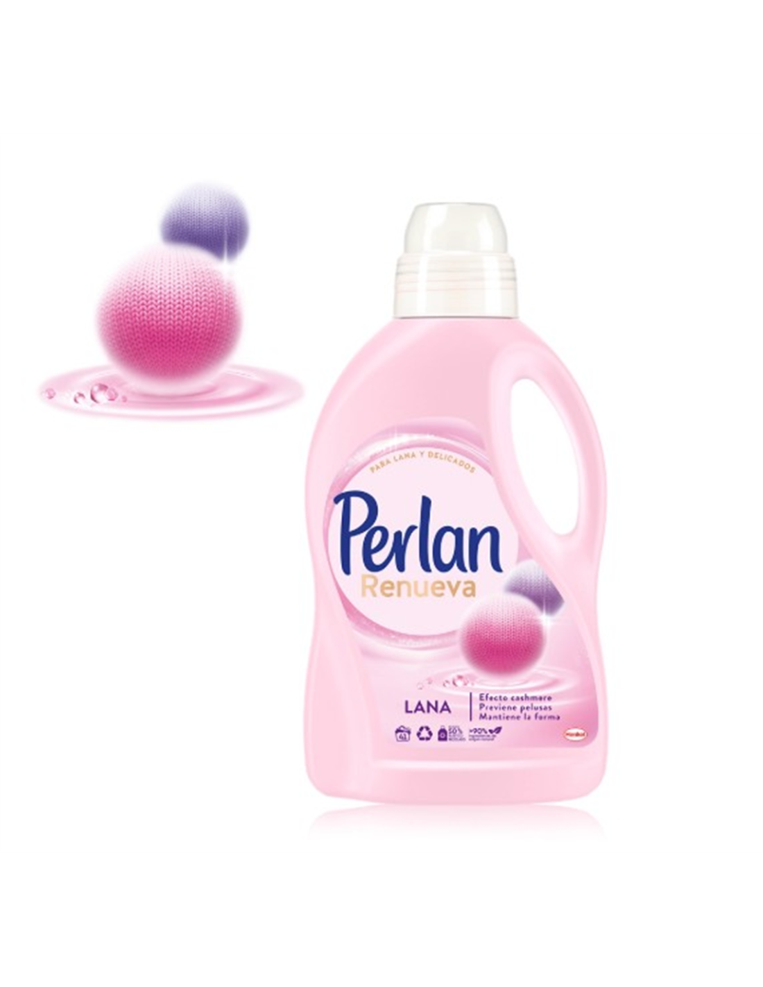 Descubre el nuevo Perlan Renueva para lana y delicados. Con su nueva fórmula mejorada ofrece un avance en el cuidado de las fibras, previene las pelusas y mantiene la forma de tu ropa. Consiguiendo que tu ropa parezca como nueva. Sigue siempre las instrucciones en la etiqueta de cada prenda. Lavado a máquina (agua blanda y media) 30 ml para ropa poco sucia