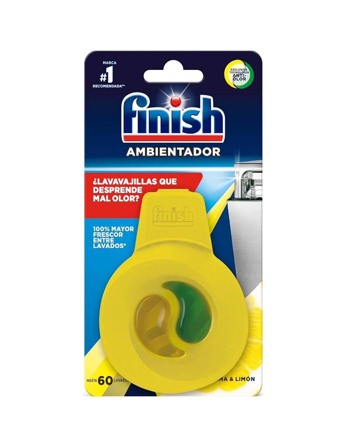 El Finish Ambientador para Lavavajillas con aroma a limón y lima es la solución ideal para mantener tu lavavajillas libre de malos olores entre ciclos de lavado. Su fórmula de doble acción no solo enmascara los olores desagradables, sino que los elimina eficazmente, proporcionando una sensación de frescura cítrica cada vez que abres el lavavajillas.