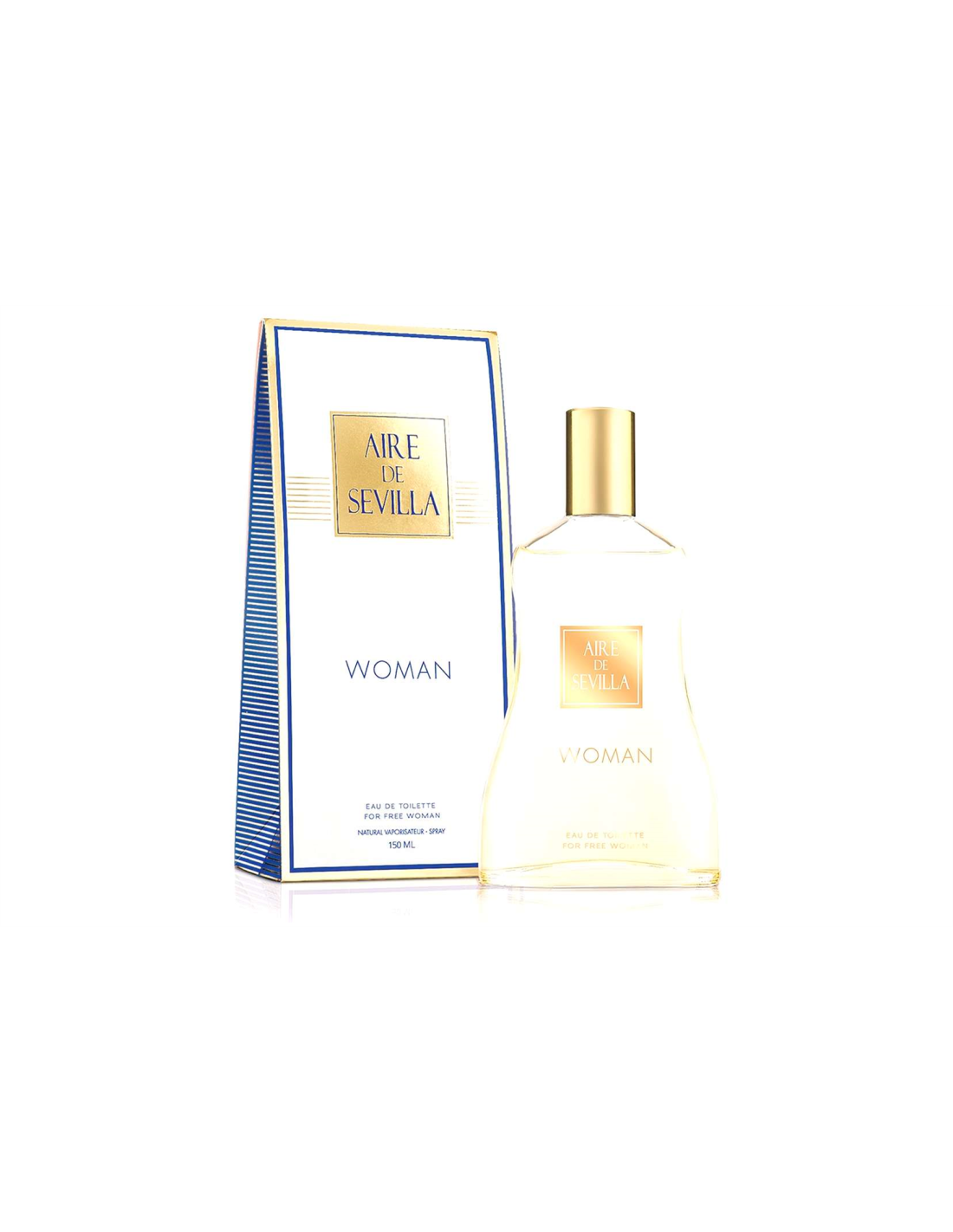 WOMAN Eau de toilette de Aire de Sevilla. Eau de toilette para mujer perteneciente a la familia olfativa floral y oriental. Su frasco de cristal te permite apreciar el color ámbar de su contenido.