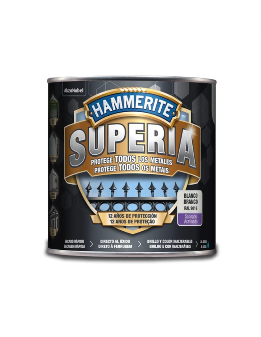 Nueva generación en esmalte antioxidante al agua, formulado para aplicarse directo al óxido y directo sobre cualquier metal sin imprimación, proporciona un acabado satinado de larga duración de hasta 12 años de protección. Secado rápido. “Colour lock technology”: brillo y color inalterables.