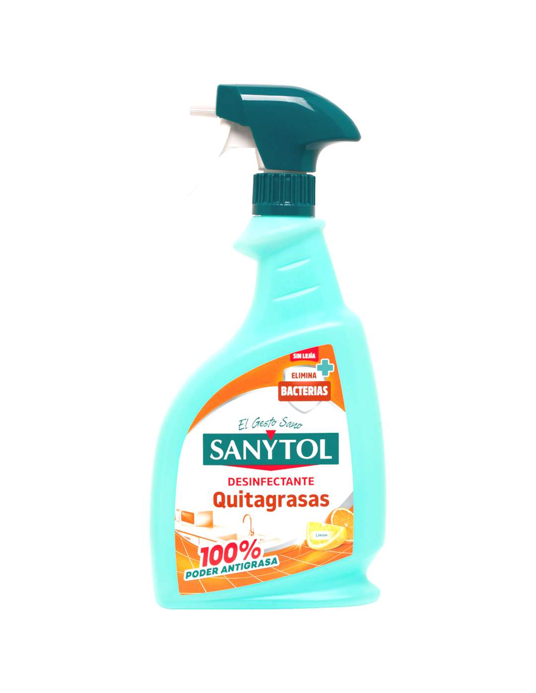 Limpiador desinfectante desengrasante para cocinas que elimina el 99,9% de los gérmenes. Eficaz contra bacterias (como la Salmonella, la Listeria o el E. coli, presentes en alimentos crudos), hongos (como el causante del moho de los vegetales) y virus envueltos como Coronavirus 229E o Influenza A H1N1 (gripe).