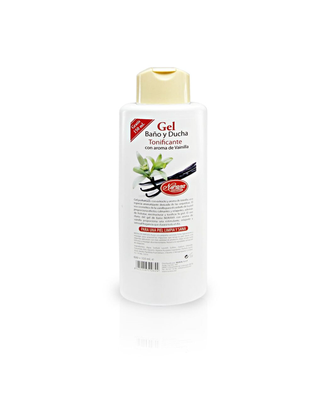 Gel perfumado con extracto y aroma de Vainilla, una especia aromatizante derivada de las orquídeas. El uso cosmético de la vainilla para el cuidado de la piel proporciona efectos calmantes y relajantes, además de hidratar, restructurar y tonificar la piel. El uso diario del gel de baño NURANA con aroma de vainilla proporciona una estimulante, relajante y sensual fragancia que durará todo el día.